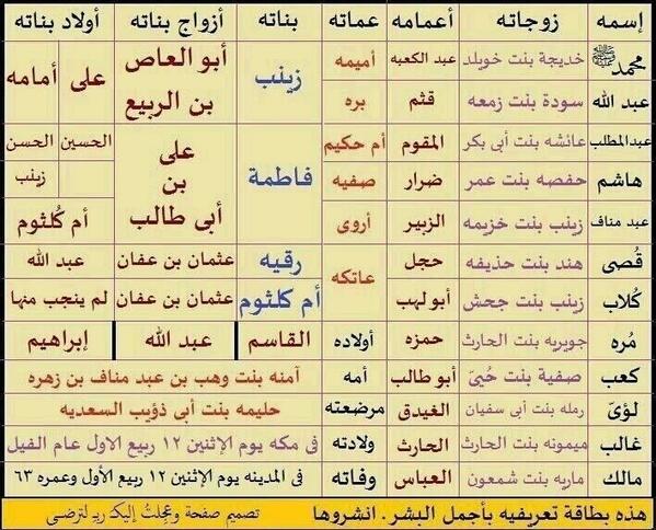 جدول تعريفي بالرسول صلى الله عليه وسلم
